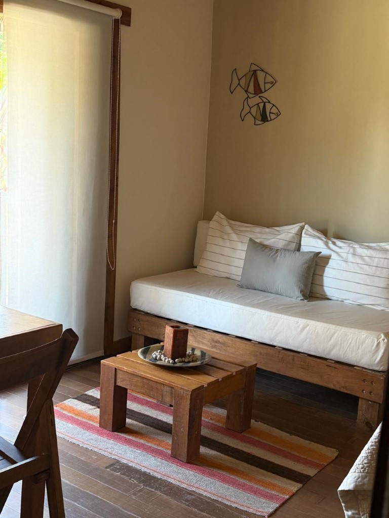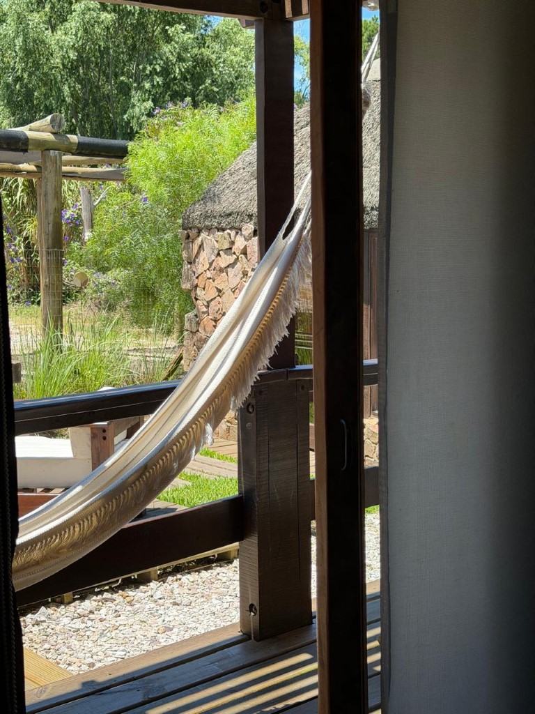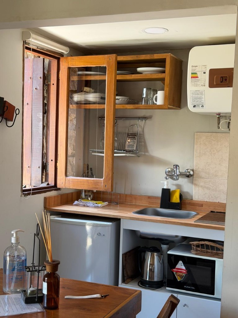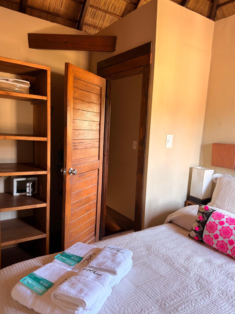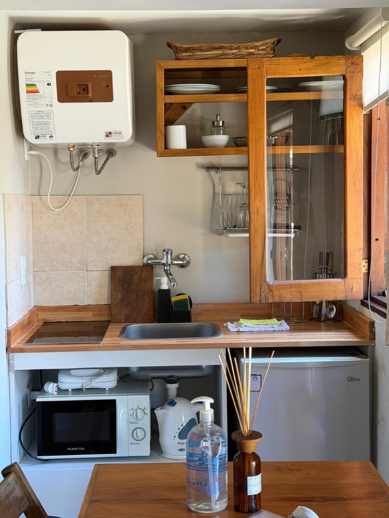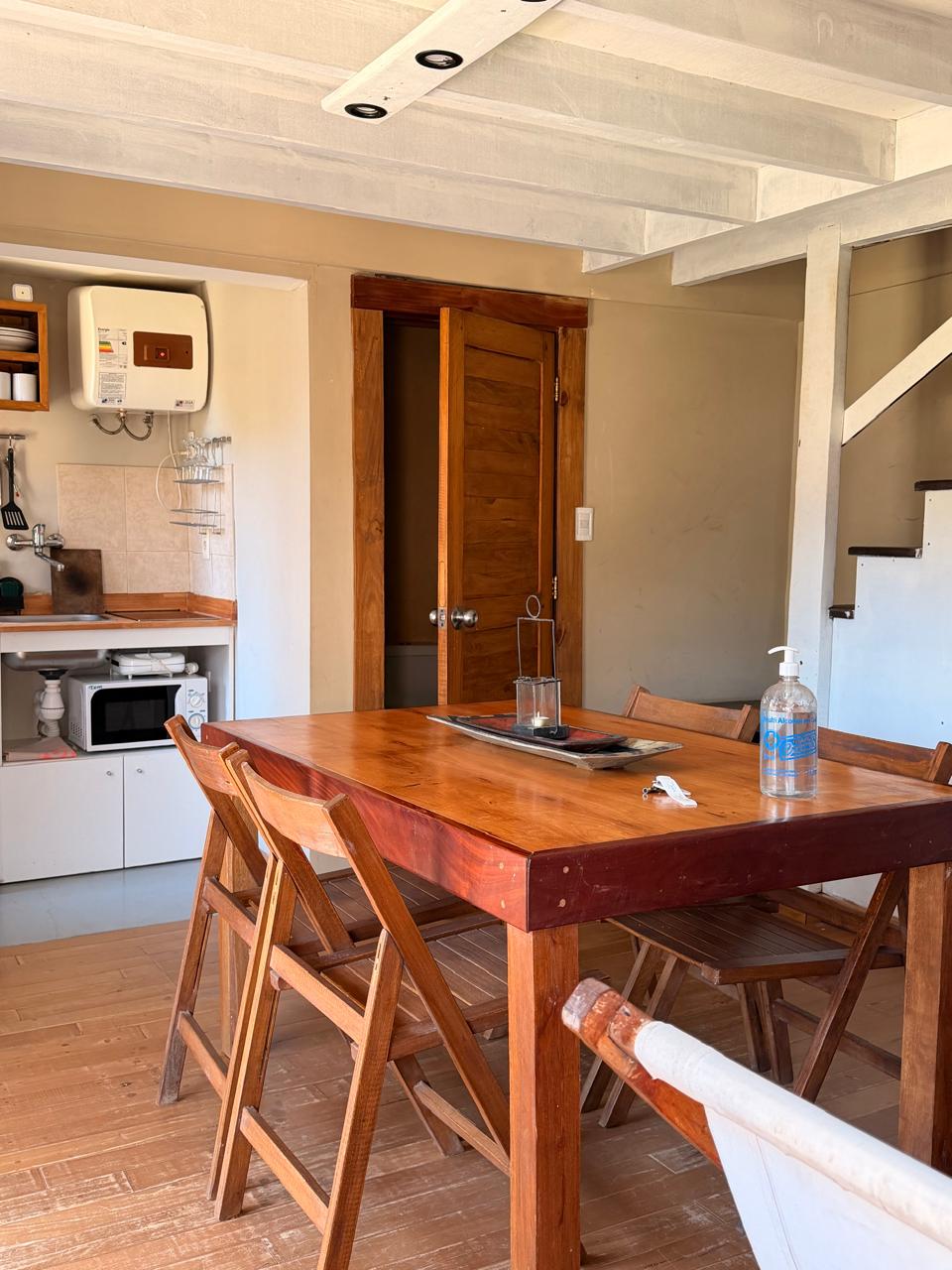 Cocina con equipamiento completo y vajilla, heladera, microondas, tostadora, anafe, pava eléctrica, ventilador, TV cable pantalla plana, WiFi, caja de seguridad, alarma individual, reposeras de playa y sombrilla, hamaca exterior en la terraza y sillón.